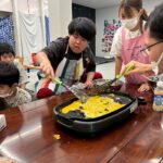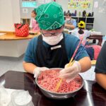 お肉をこねたり丸く形を整えたり、片面焼いてひっくり返したり!!!